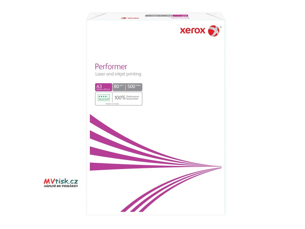 Xerox Performer je víceúčelový papír, který nabízí spolehlivost v kombinaci s vynikajícím poměrem ceny a výkonu. Je to konzistentní a spolehlivý produkt vhodný pro všechny aplikace pro kopírování a laserový tisk. Vhodný pro maloobjemový i velkoobjemový tisk. Formát A3. Obsahuje 500 listů/archů. Cena za kus.