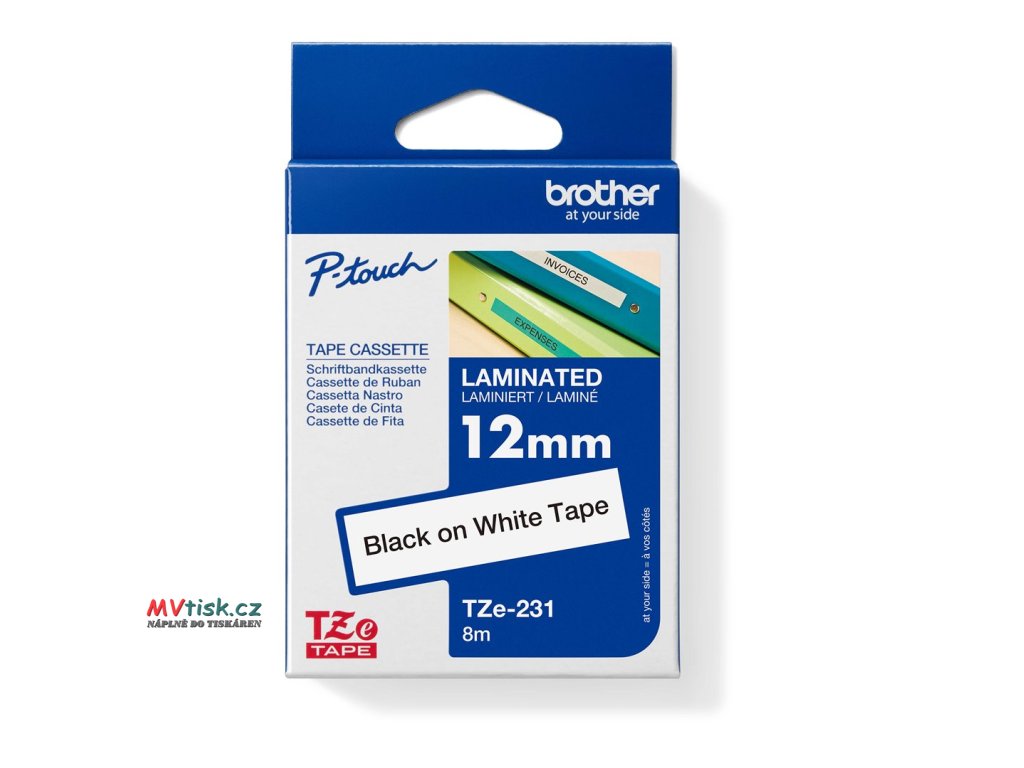 Brother TZE-231, černý tisk bílý podklad, 8m, 12mm