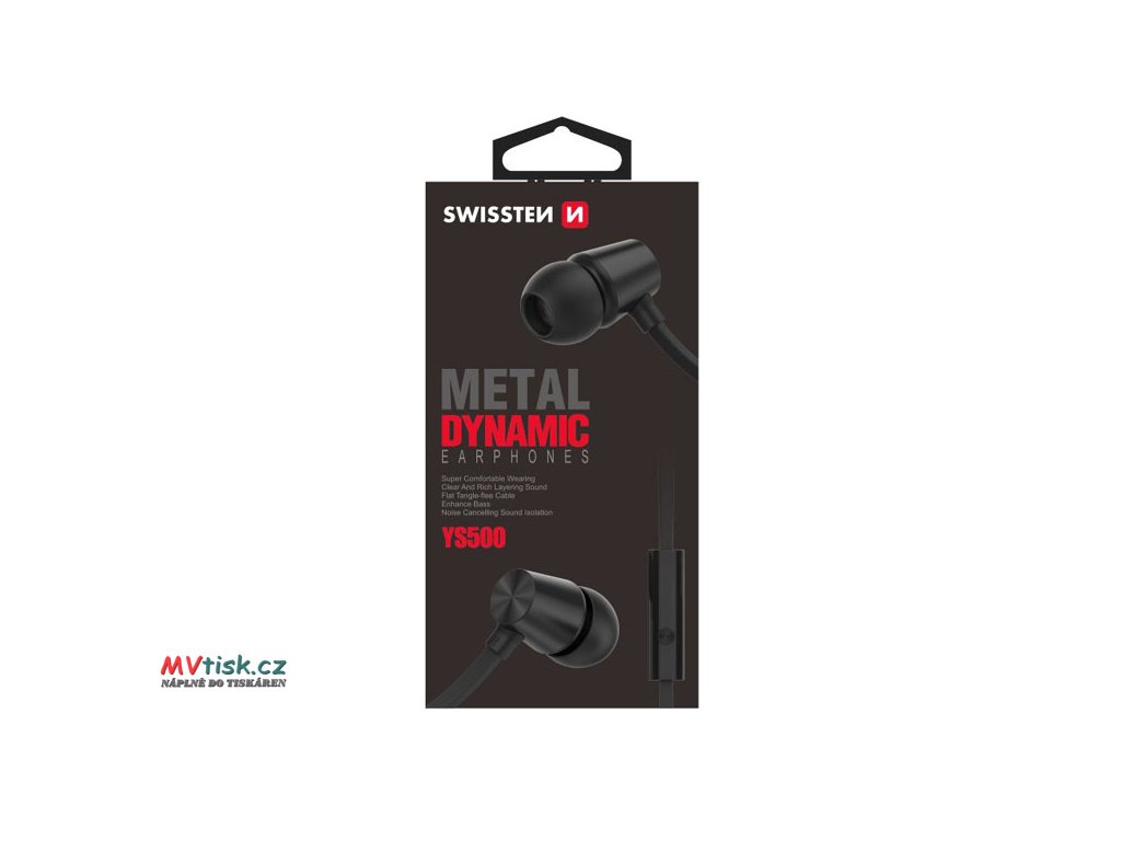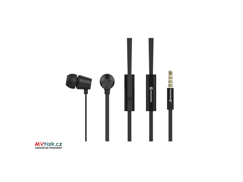 SWISSTEN YS500, sluchátka s mikrofonem, bez ovládání hlasitosti, černá, špuntová typ 3.5 mm jack