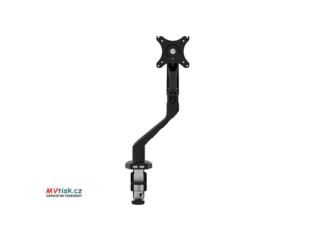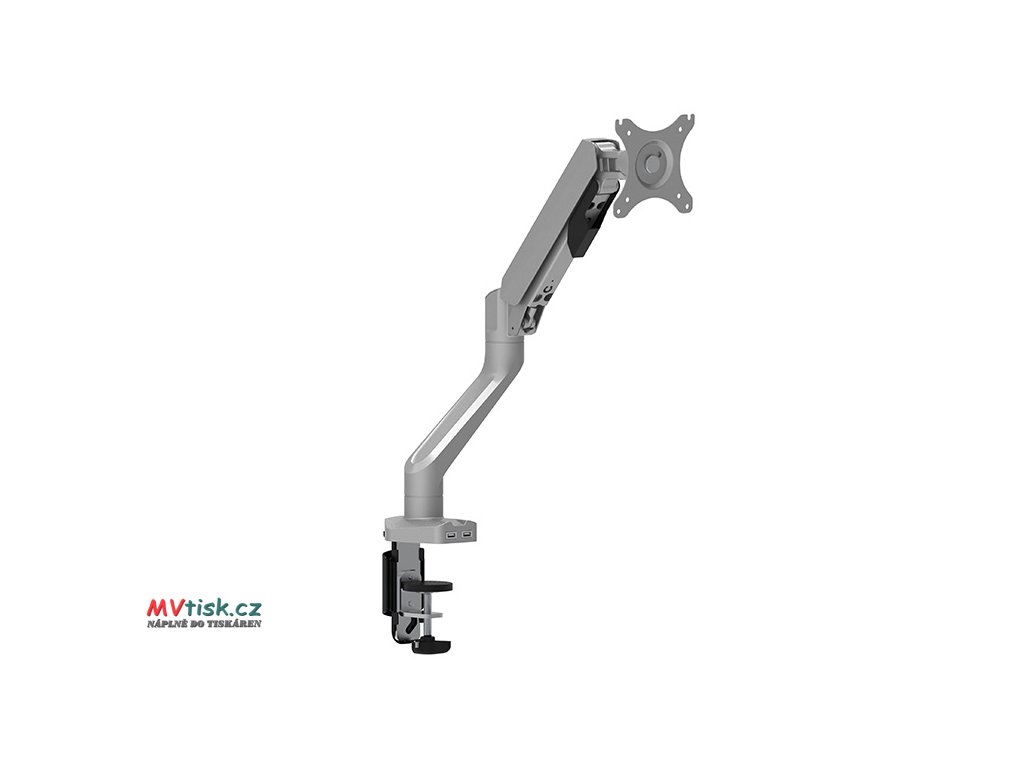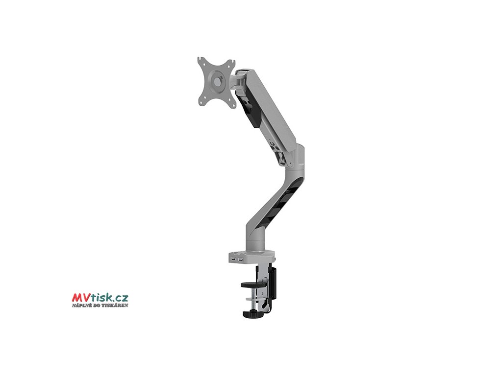 Polohovatelný držák pro monitor, 2-9KG, svorka a průchodka stolu, 17"-30", USB HUB, 75x75/100x100, šedý