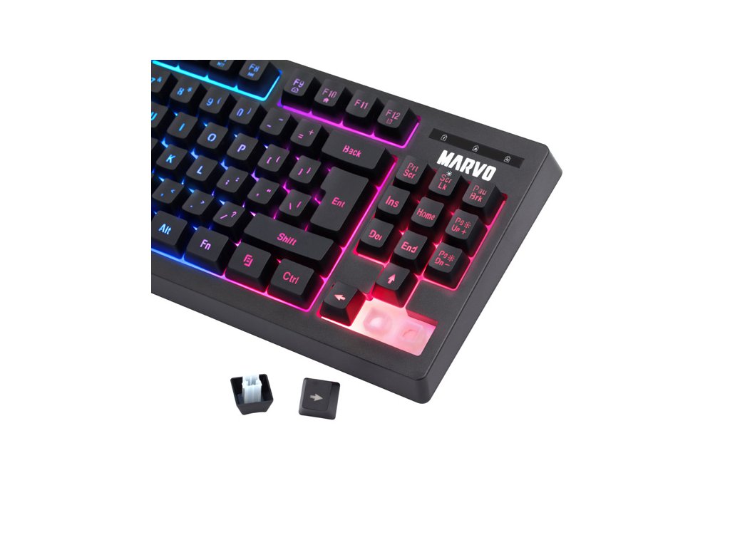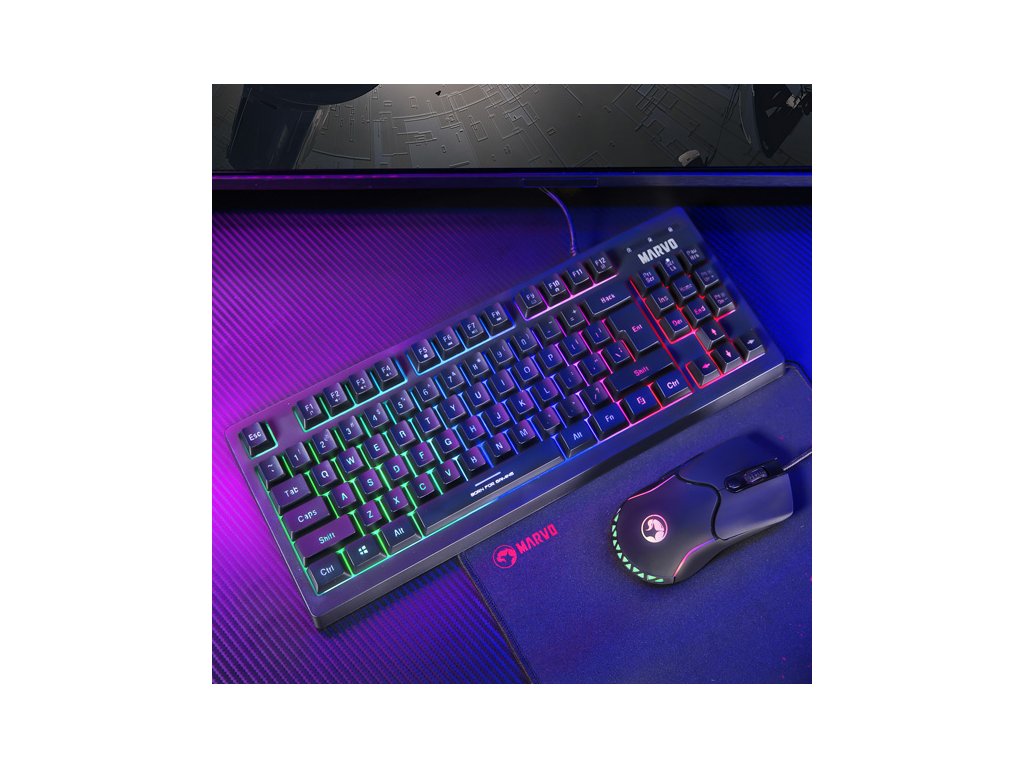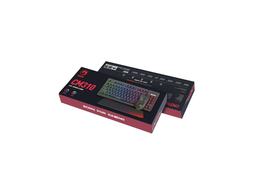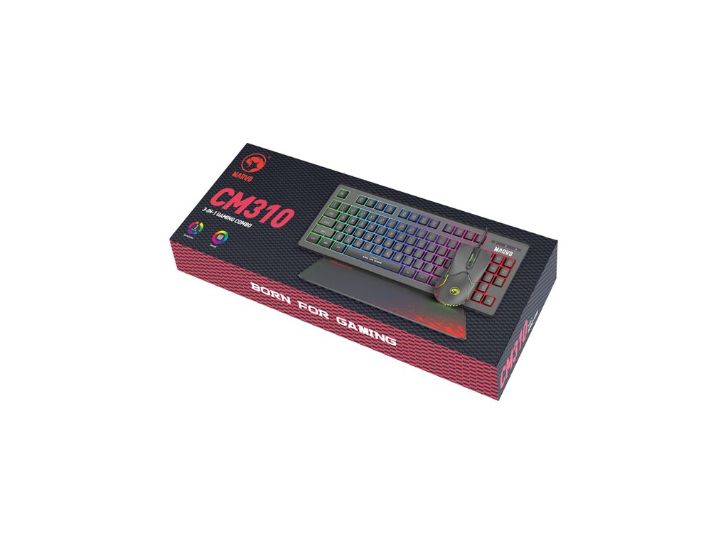 Marvo CM310 EN RGB sada klávesnice drátová (USB) US, černá s herní myší a podložkou, herní, membránová typ podsvícená