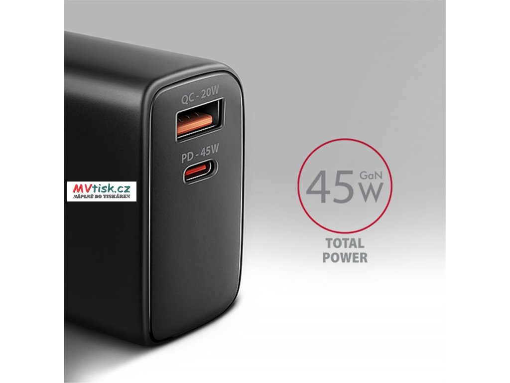 Kompaktní velikost a vysoký výkon je daný využitím nové GaN technologie. Použité součástky s Nitridem Galia pracují s vysokou účinností, což umožňuje dosahovat vysokých výkonů při malé velikosti. Nabíječka je vybavena výstupy Power Delivery 3.0 / Quick Charge 4+ USB typu C a Quick Charge 3.0 USB typu A, což umožňuje rychlé nabíjení nejen smartphonů a tabletů, ale také malých notebooků výkonem až 45W.
