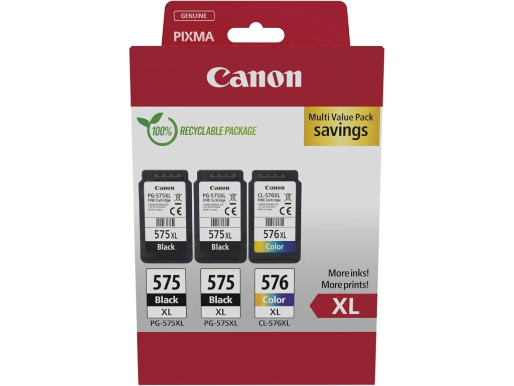 Canon PG-575XLx2/CL-576XL Ink cartridge Multi, černá (black) + barevná (colour), výtěžnost černé 2x 400str. a barevné 300 str.